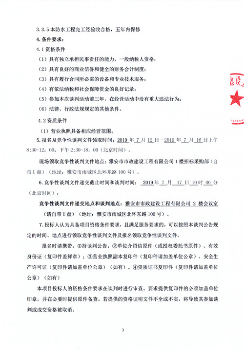 城利水電站屋面防水材料采購(gòu)安裝工程競(jìng)爭(zhēng)性談判公告