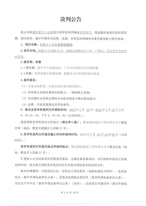 城投建工購置辦公電腦確認(rèn)供貨單位的競爭性談判公告