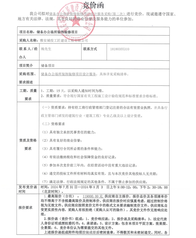 儲(chǔ)備辦公場(chǎng)所裝飾裝修項(xiàng)目設(shè)計(jì)服務(wù)采購(gòu)(第二次)競(jìng)價(jià)公告