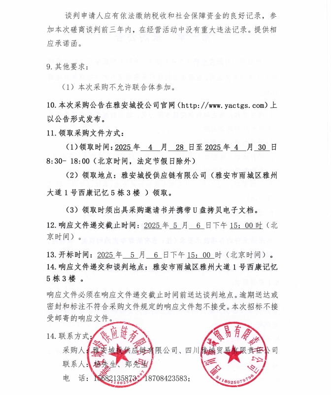雅安城投供應鏈有限公司、四川雅城貿易有限責任公司瀝青材料聯(lián)合采購公告